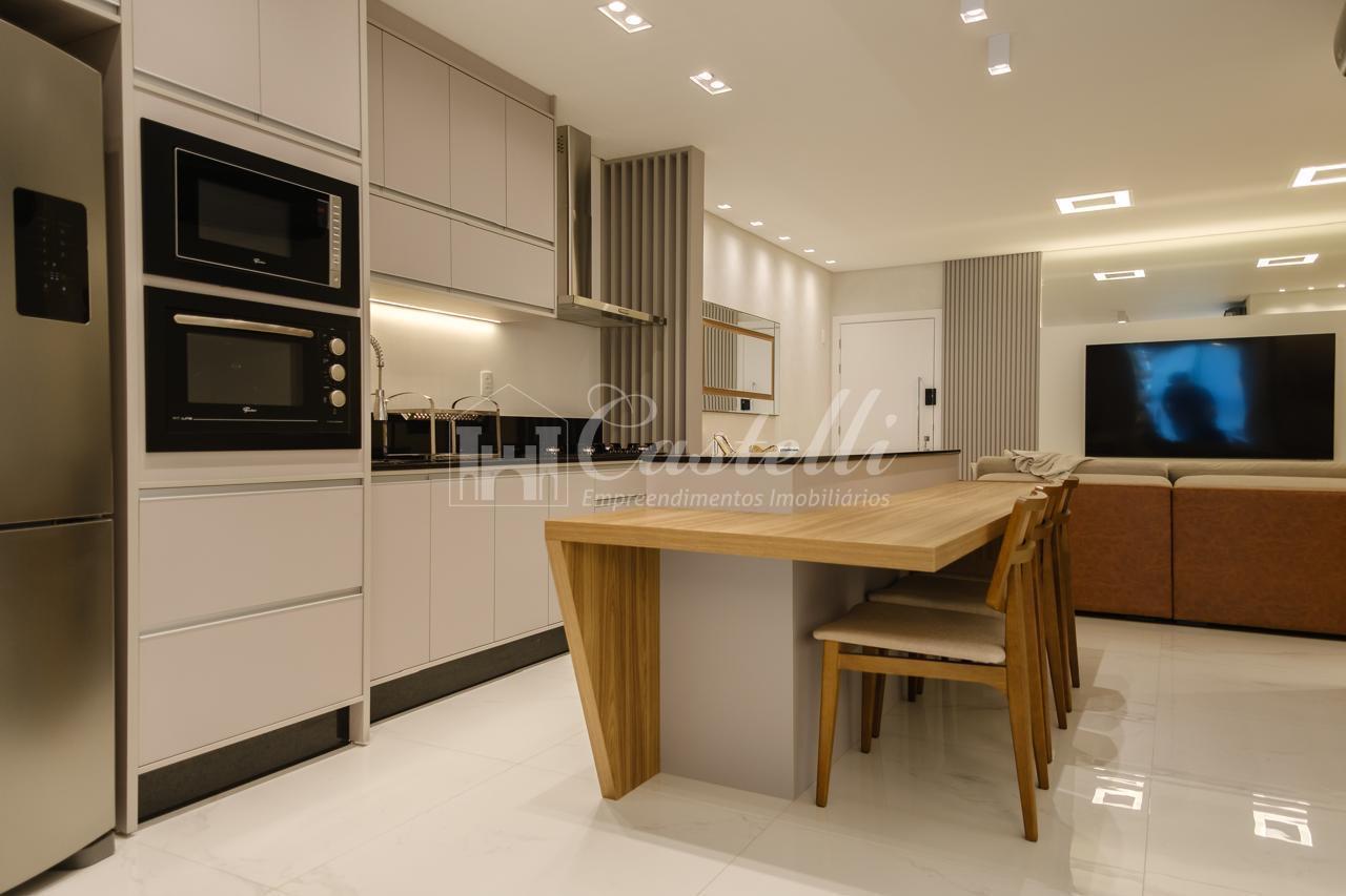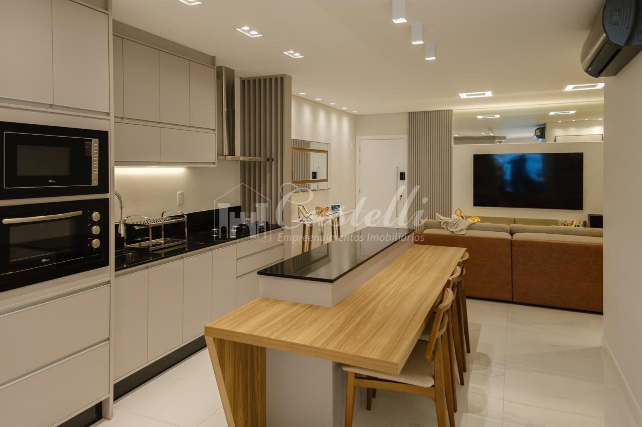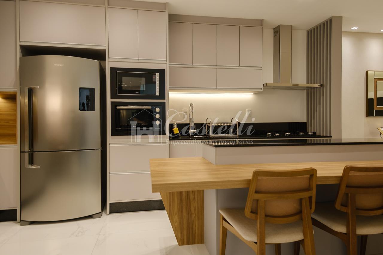 Apartamento com aproximadamente 203 m² de área total e 160 m² de área privativa dividido em 03 dormitórios sendo 03 suítes, sala de tv, sala de jantar, cozinha, sacada com churrasqueira, lavabo, área de serviço e 03 vagas de garagem.