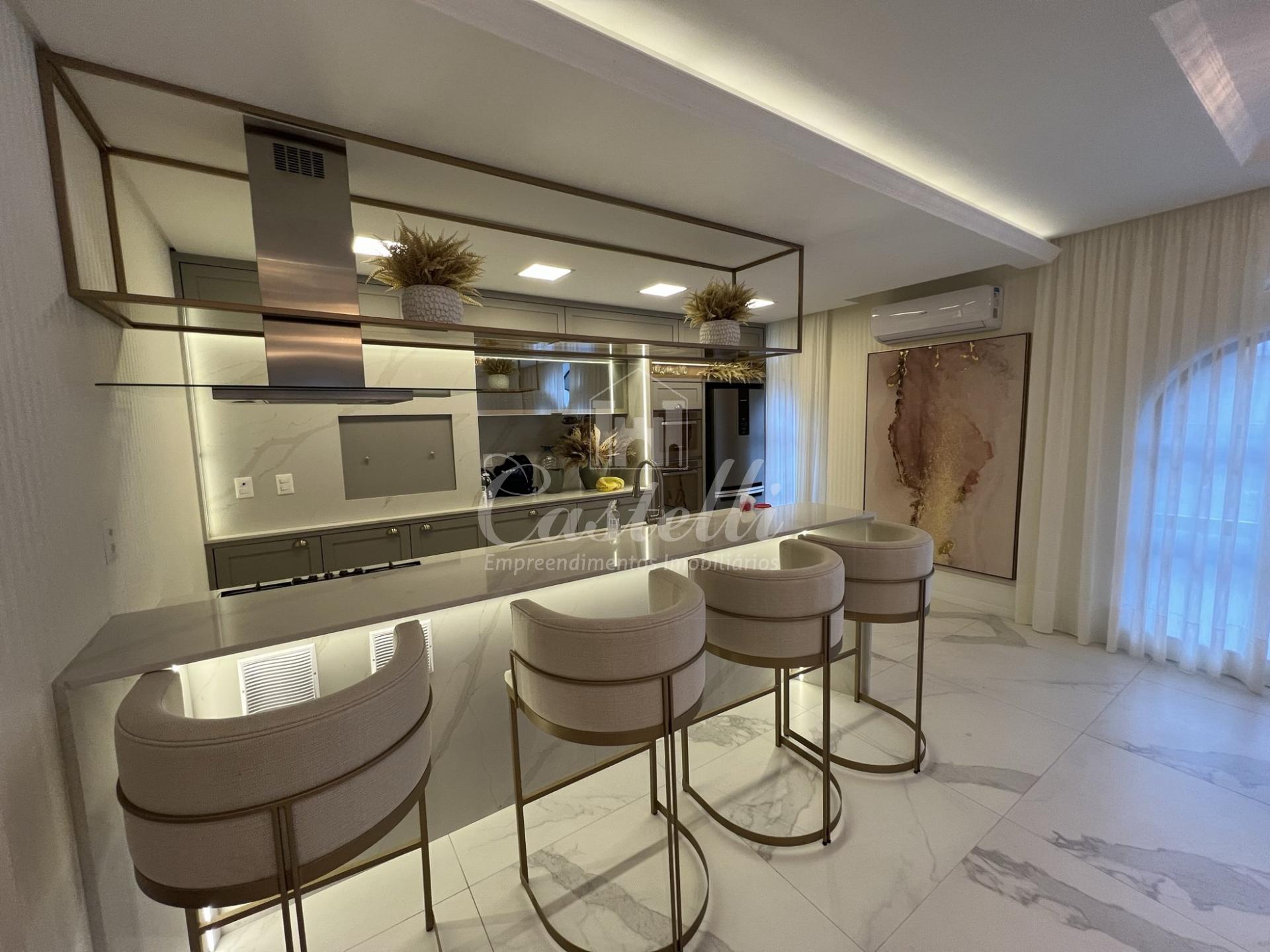 Apartamento com aproximadamente 163 m² dividido em 04 dormitórios sendo 04 suítes, sala de tv, sala de jantar, sacada integrada com churrasqueira e fechada, cozinha, área de serviço e 03 vagas de garagem.