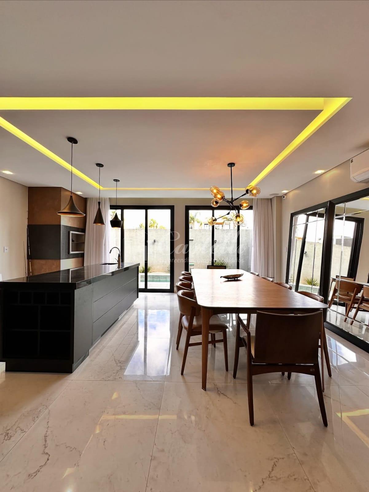 Residência em alto padrão semi-mobiliada com aproximadamente 284 m² dividida em 03 dormitórios sendo 03 suítes com sacada, sala de tv, sala de jantar, cozinha, espaço gourmet com churrasqueira, lavabo, despensa, lavanderia, piscina e 02 vagas de garagem.