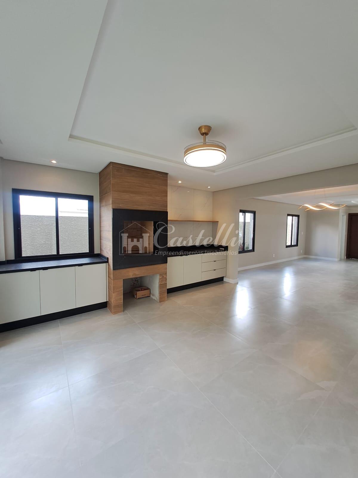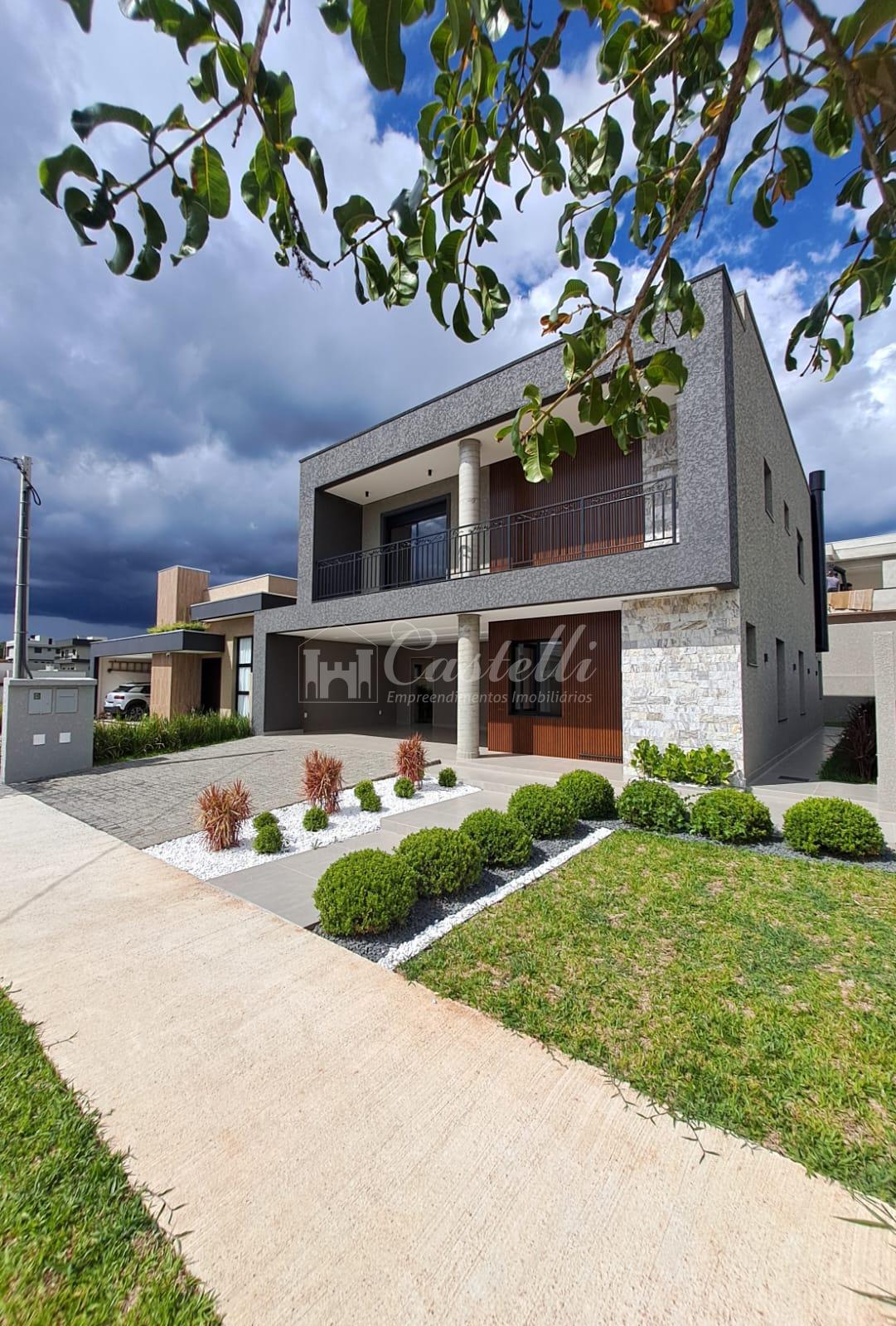 Residência com aproximadamente 273 m² dividida em 03 dormitórios sendo 03 suítes uma com closed e sacada, sala de tv, sala de jantar, cozinha, lavabo, banheiro social, escritório, espaço gourmet com churrasqueira, lavanderia, terreno nos fundos e vaga para até 04 veículos.