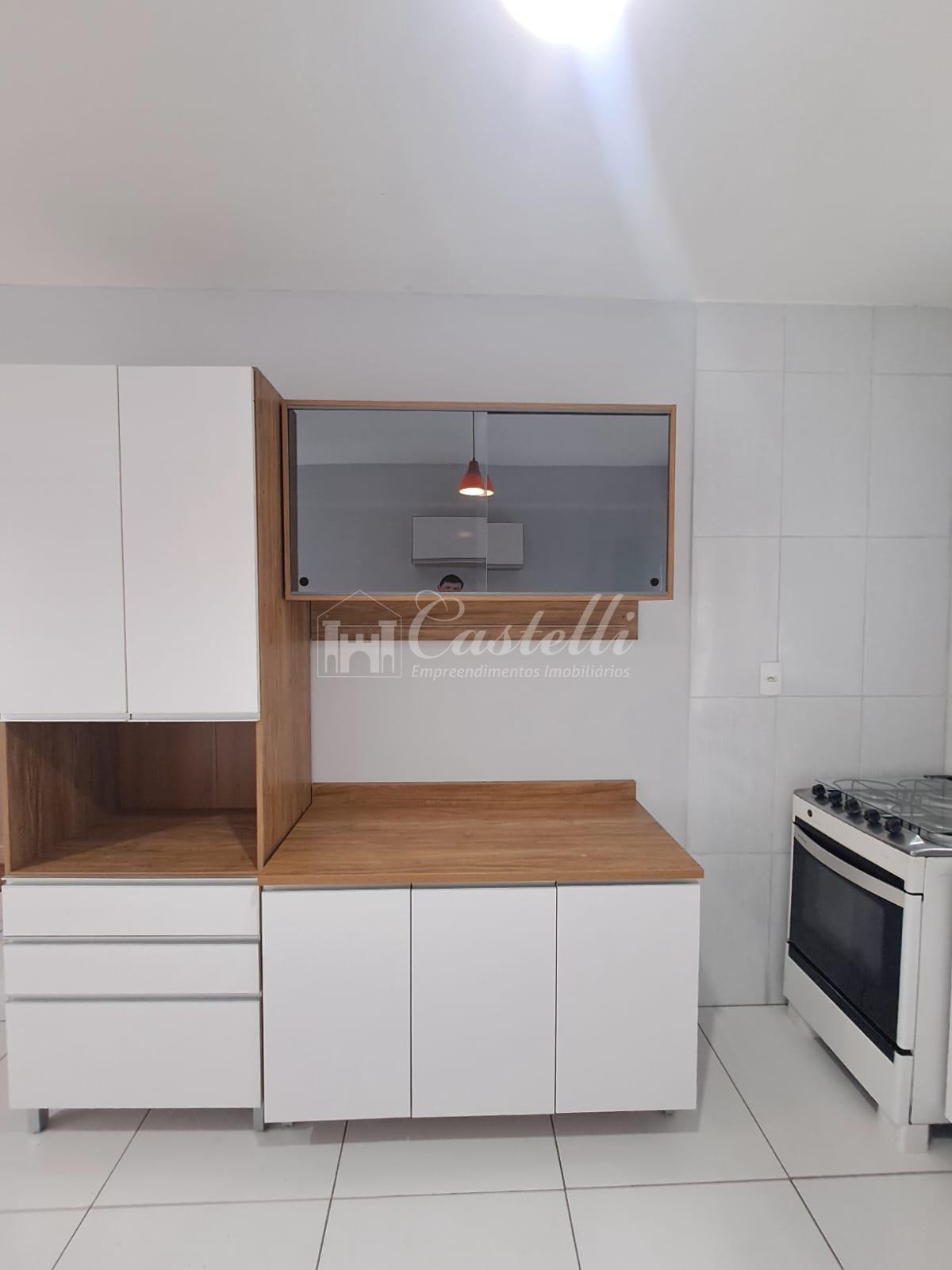 Piso laminado, Em laje, Grades nas janelas, Armarios na cozinha, Moveis no dormitório, Fogão, Box e armário no banheiro, Portão eletrônico,