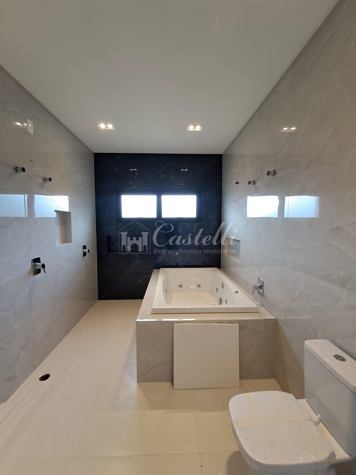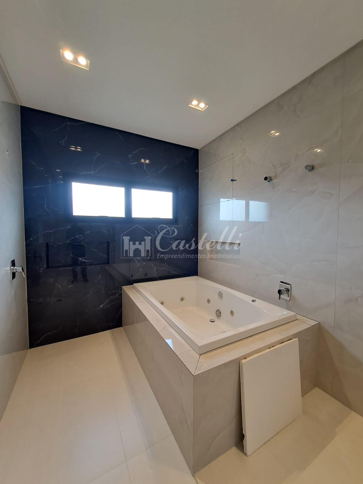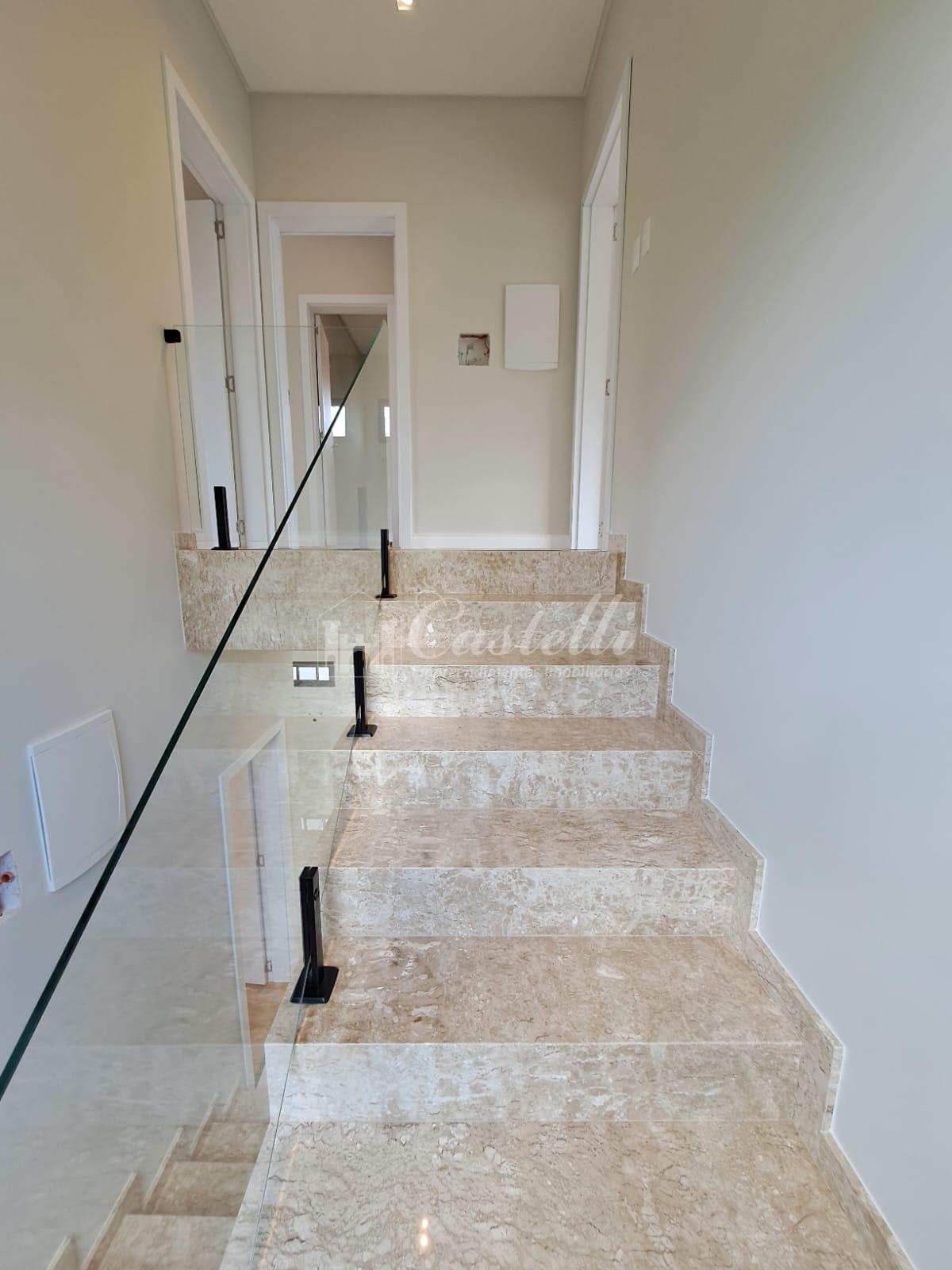 Residência com aproximadamente 230 m² dividida em 04 dormitórios 02 com sacada e 01 com terraço sendo 04 suítes uma no piso térreo e uma com closed e hidromassagem, sala de tv, sala de jantar, cozinha, espaço gourmet com churrasqueira, lavabo, área de serviço, amplo terreno nos fundos e vaga de garagem.