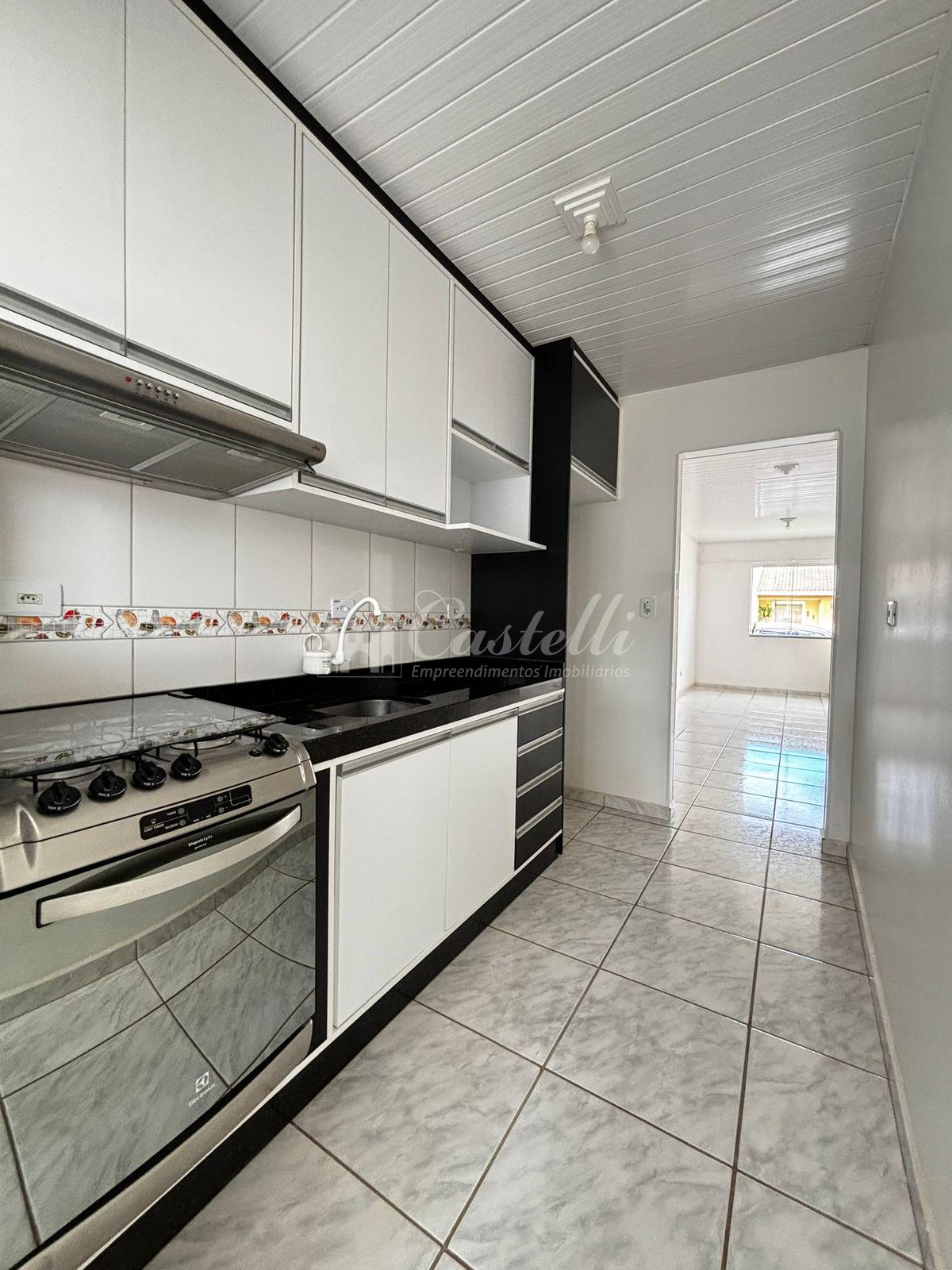 6335 E- CondomÃnio Residencial Capri Casa com aproximadamente 60 m² dividida em 03 dormitórios, sala, cozinha, banheiro social, área de serviço, espaço nos fundos e vaga para carro.