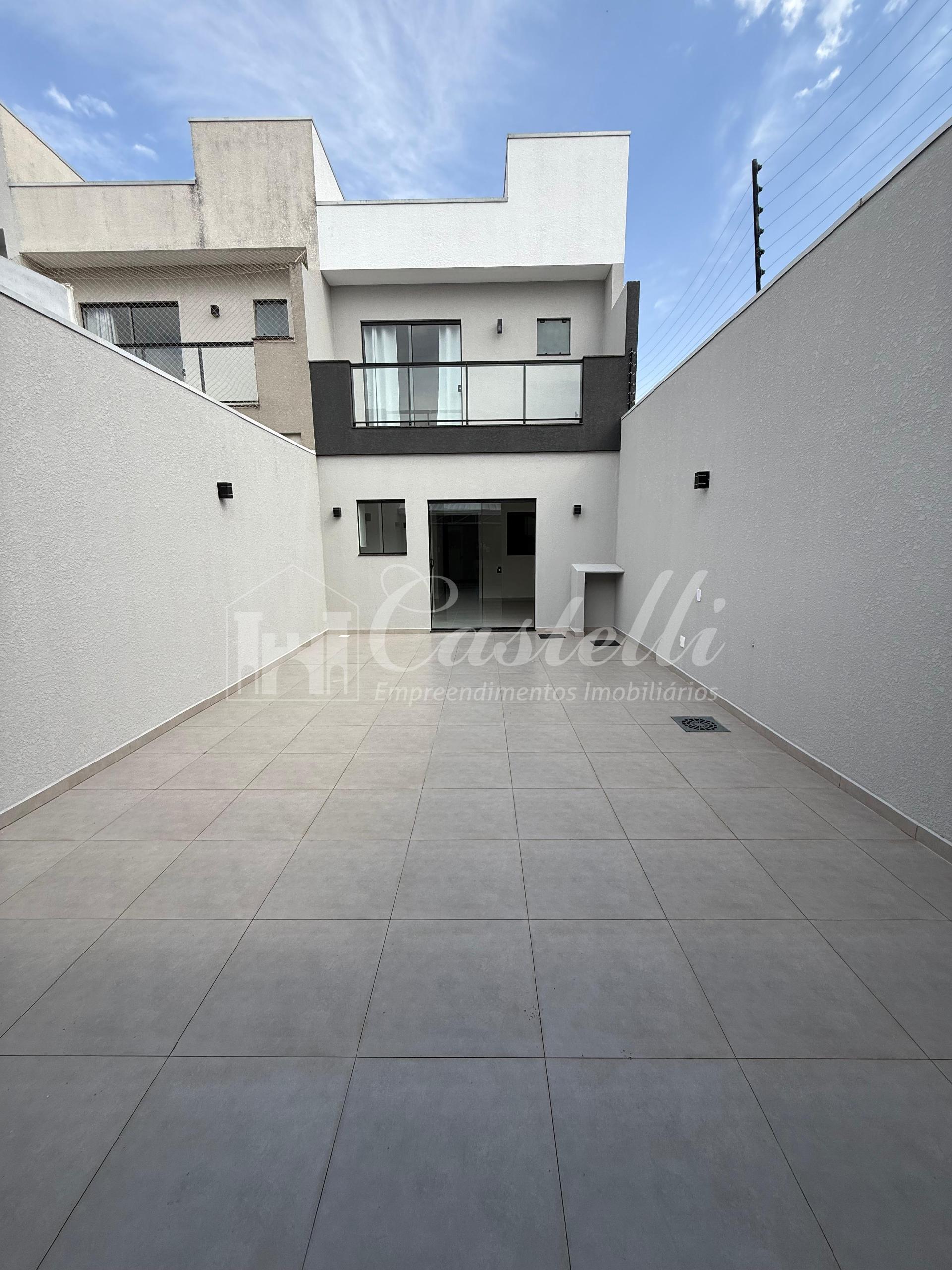 6081 E- Sobrado com aproximadamente 133 m² dividido em 03 dormitórios sendo 01 suÃte com sacada, sala de tv e jantar, cozinha, lavabo, banheiro social, área de serviço, despensa, edÃcula com banheiro, espaço gourmet com churrasqueira e vaga para carro.